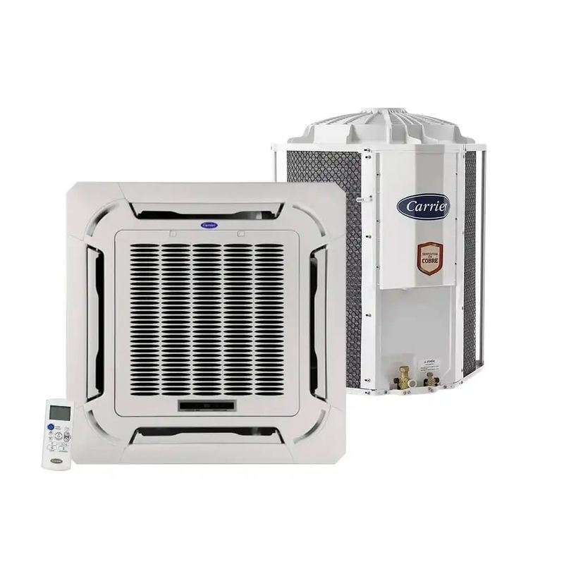 O Split Cassete Inverter Carrier é o equipamento ideal para quem precisa climatizar grandes ambientes residenciais, salas amplas e conjuntos comerciais com distribuição uniforme no ambiente. O sistema conta com a tecnologia de compressores de velocidade variável, que proporciona grande economia de energia, e fluido refrigerante ecológico R-410A. O Split Cassete Inverter Carrier está disponível nas capacidades de 30.000 e 49.000 BTU/h.