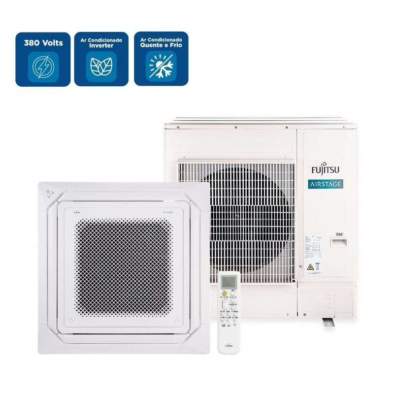 Ar Condicionado Split Cassete Inverter Fujitsu Airstage Premium 45000 BTU/h Quente e Frio Trifásico AUBH45KRLB - 380 Volts