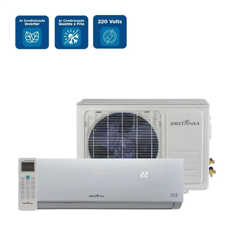 Ar Condicionado Split Inverter Britânia Eco 24.000 BTUs Quente e Frio garante temperatura ideal o ano inteiro com economia e praticidade. Com tecnologia Inverter, o aparelho mantém o ambiente climatizado de forma constante, evitando picos de energia e garantindo classificação A em eficiência energética.