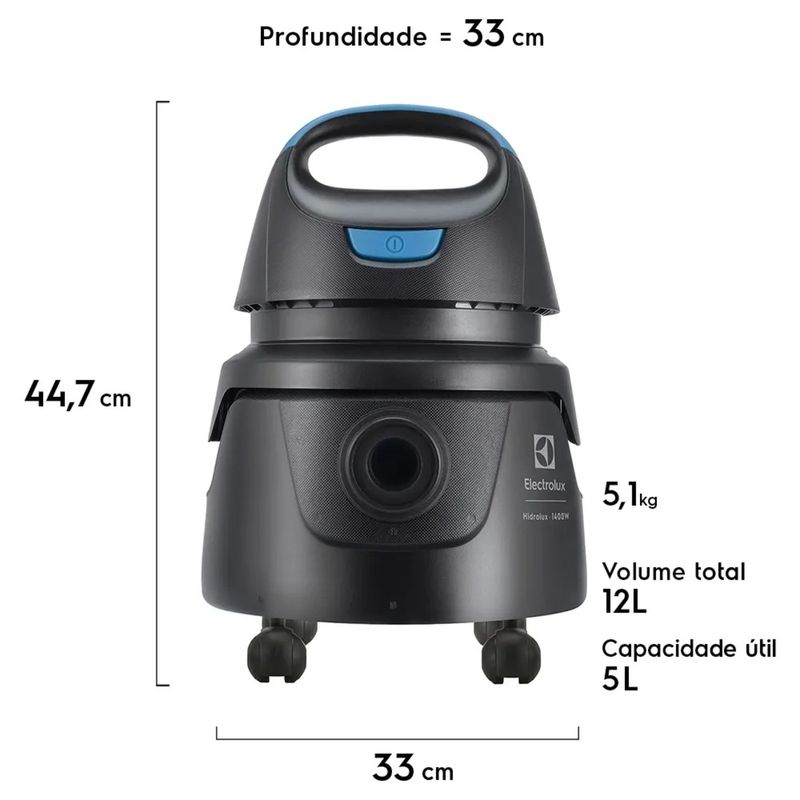 Aspirador de Pó e Água Hidrolux Electrolux AWD01, multifuncional e compacto para casas e apartamentos. O Aspirador de Pó e Água Hidrolux AWD01 1400W 5L é ótimo para a sua casa, vai te auxiliar em qualquer tipo de limpeza, seja aspirando a sujeira ou simplesmente a água.