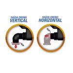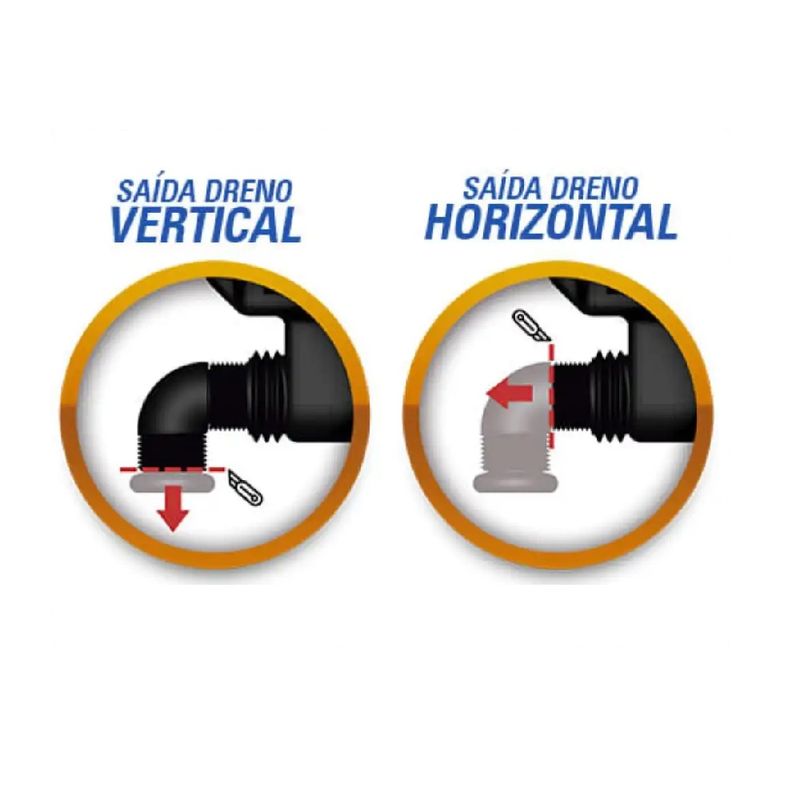 2 opções de direcionamento do dreno, vertical e horizontal, que pode ser escolhida conforme a melhor solução para instalação;