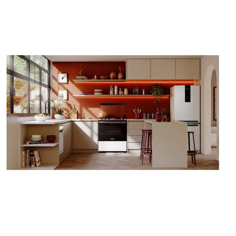 oferece qualidade e praticidade para uma rotina dinâmica. Com 3 queimadores rápidos para agilizar o preparo dos alimentos, trempes duplas e robustas garantem estabilidade e segurança, além do forno com alta capacidade e design funcional.
