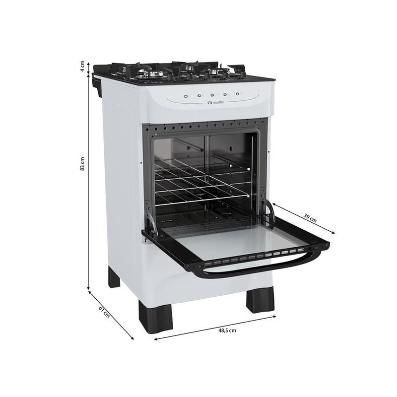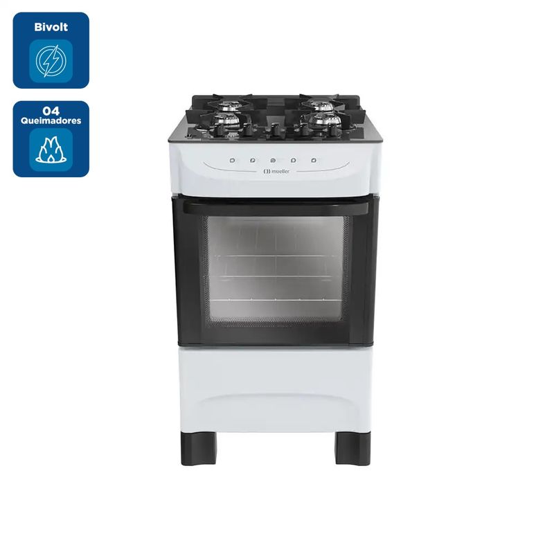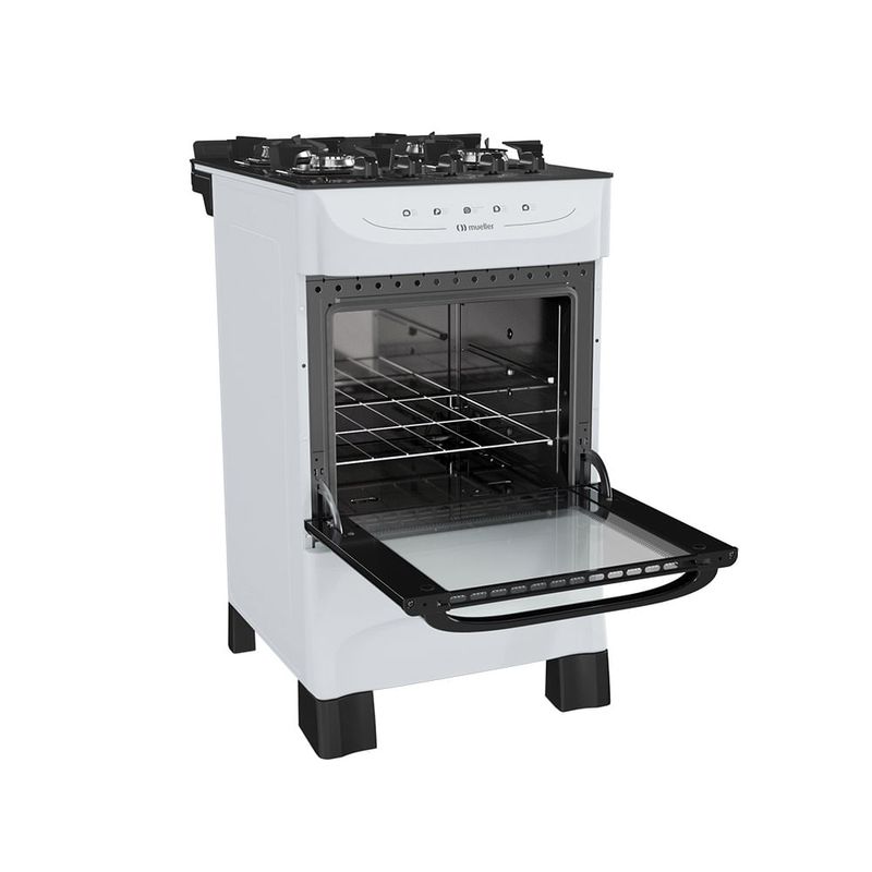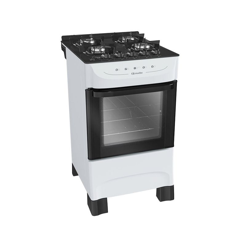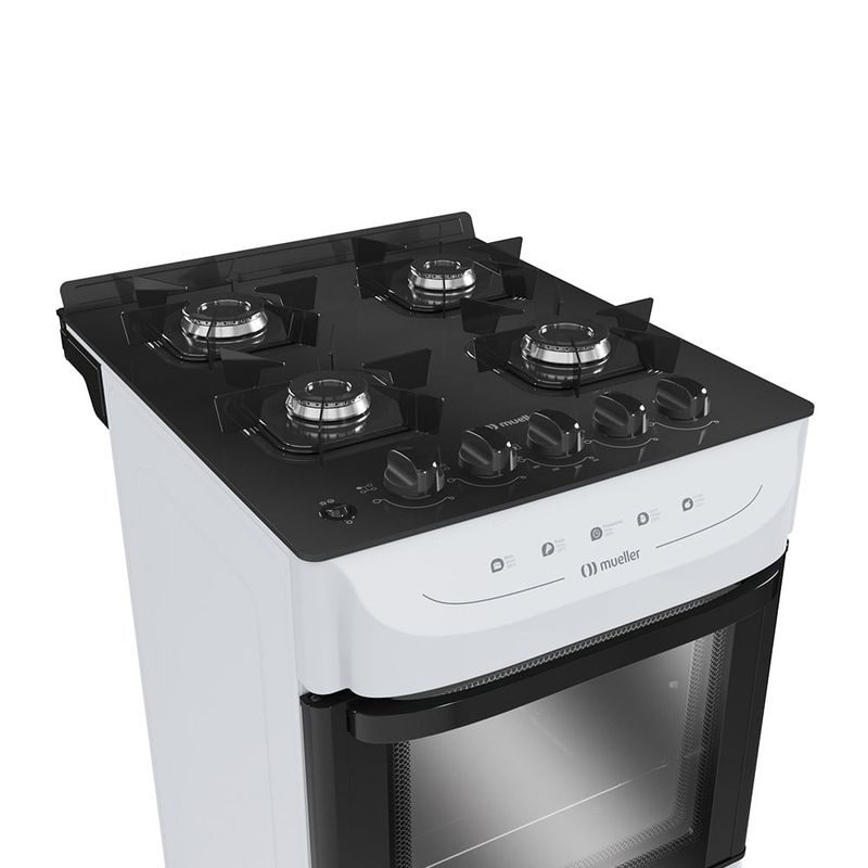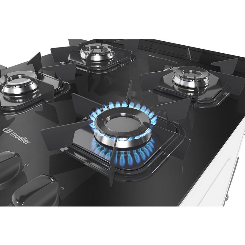 Fogão De Piso Mueller 4 Bocas Mesa De Vidro Branco MFV4BB - Bivolt