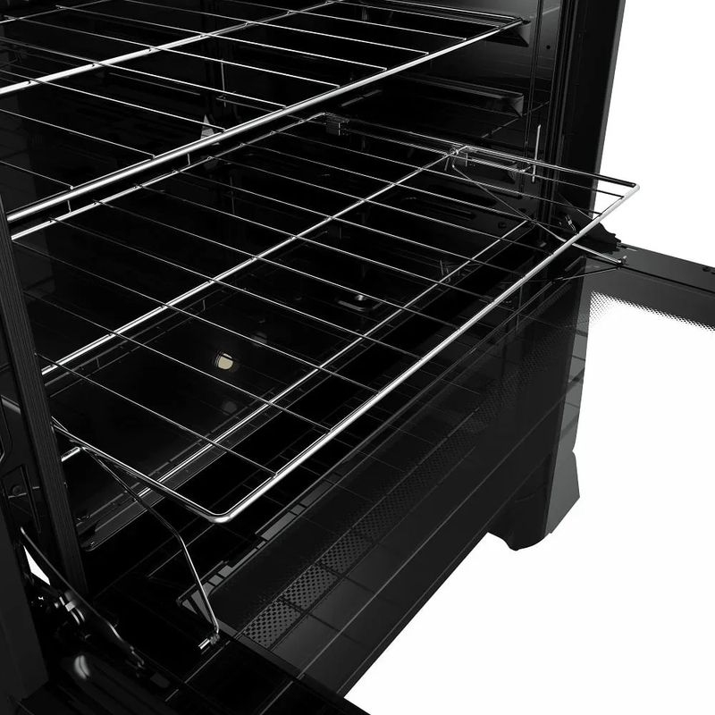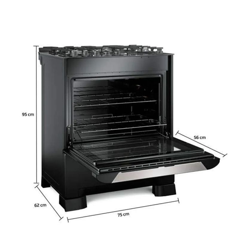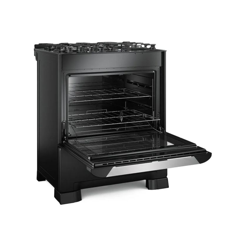 Grades com 6 pontos de apoio e encaixe exclusivo; Vidro da porta do forno facilmente removível: facilita a limpeza.
