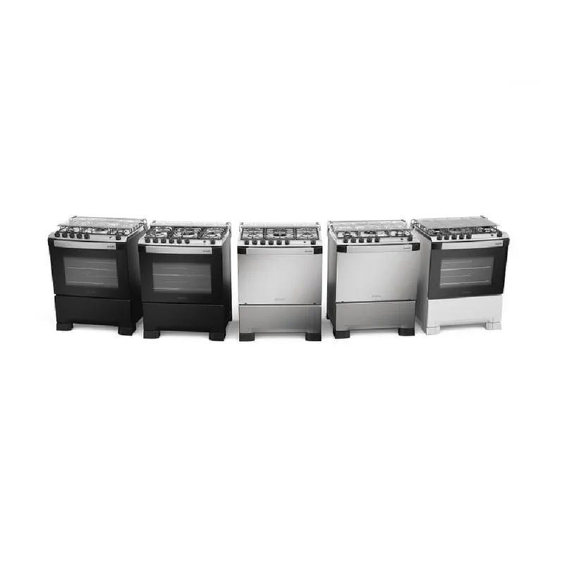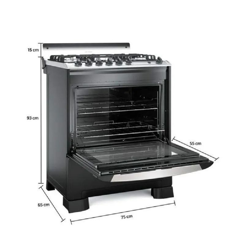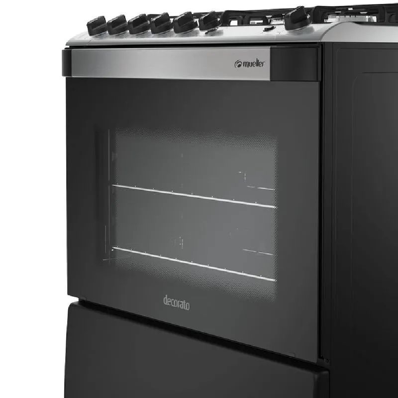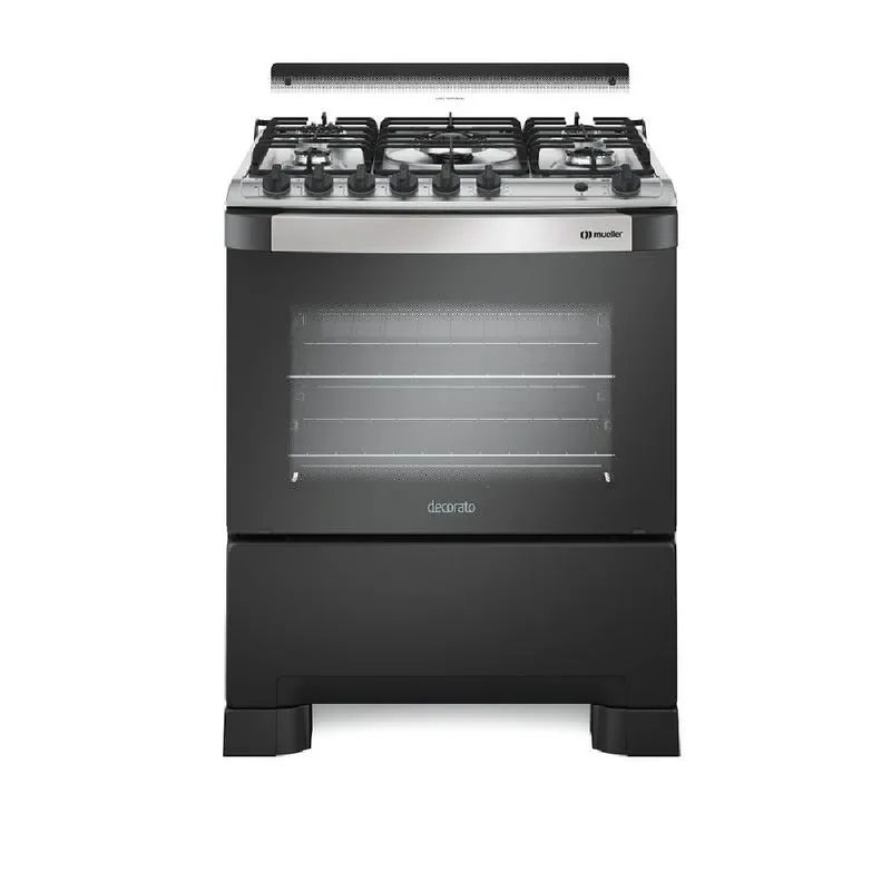 O Fogão de piso Mueller 5 bocas Preto Fosco Decorato Gourmet – Bivolt proporcionará eficiência e desempenho gourmet na sua cozinha Para quem aprecia uma receita bem executada, este é o fogão ideal.