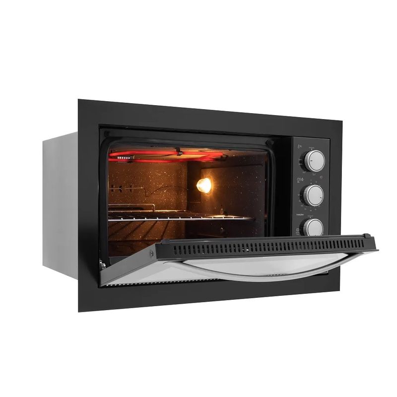 Apresentamos o Forno Elétrico Fischer Fit Line de Embutir, uma fusão de design moderno e funcionalidade excepcional. Disponível em três versões elegantes: frontal em aço carbono pintado em branco, preto ou em inox escovado. Este forno oferece um controle automático de temperatura, timer flexível de até 2 horas com aviso sonoro para conveniência máxima. Com uma lâmpada interna para visualização clara, seletor de funções intuitivo e isolamento térmico total para eficiência energética. Equipado com bandeja esmaltada para resíduos, grade cromada removível para limpeza fácil e uma porta com vidro duplo que garante retenção de calor e economia de energia. Seu corpo interno autolimpante simplifica a manutenção. Com uma potência total de 1775W, o Forno Elétrico Fischer Fit Line é a escolha ideal para quem busca praticidade e estilo na cozinha.