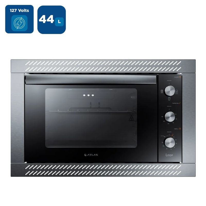 O Forno Elétrico de Embutir Atlas 44 Litros U Top Com Grill e Timer Preto é uma escolha inteligente para o uso diário, oferecendo um timer com desligamento automático. Nunca mais erre o ponto ideal das suas receitas, graças a essa funcionalidade intuitiva.