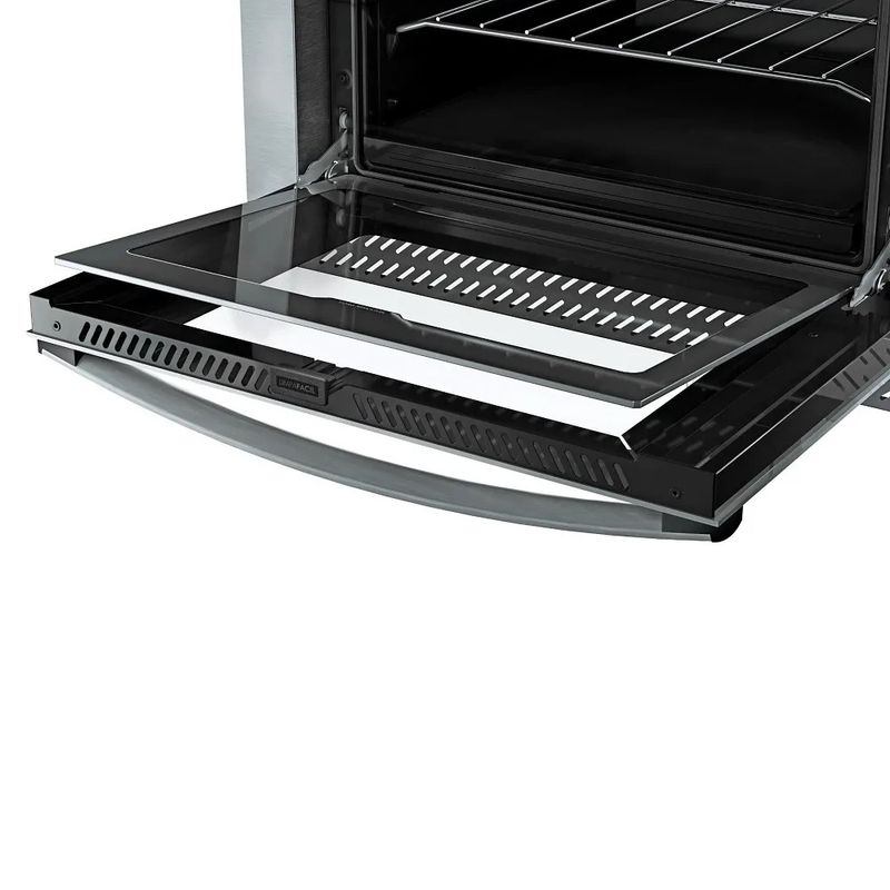 A moldura em aço inox escovado confere um visual moderno e elegante ao seu espaço culinário. Com a trava "clicou, soltou", a remoção do vidro duplo é rápida e descomplicada, tornando a limpeza uma tarefa fácil.