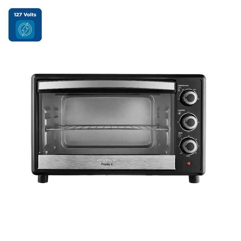 O Forno Mondial 42 Litros Family II Preto FR42 você pode fazer aquela receita tamanho família sem preocupação. O forno elétrico Family II FR-42 da Mondial possui capacidade para 42 litros e é perfeito para aquecer, cozinhar, tostar, assar, gratinar e grelhar de maneira eficiente. Possui controle de temperatura, grelha com regulagem de altura, timer de 90 minutos com desligamento automático e alta potência de 1600W.
