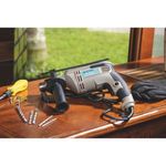 Projetada para perfurar madeira, metal e concreto, possui botão seletor de sentido de rotação, trava de gatilho e dois modos: com e sem impacto.