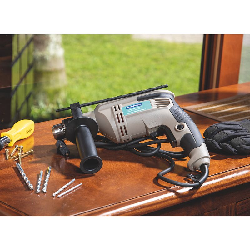 De tempos em tempos, algo precisa ser instalado ou reparado em casa, certo? Por isso, você precisa ter à mão a Furadeira de Impacto Tramontina 500 W 220 V 1/2 Polegada com Empunhadura Auxiliar e Sistema de Reversão, item indispensável para o seu kit de ferramentas. Ela é projetada para perfurar madeira, metal e concreto, possui botão seletor de sentido de rotação, trava de gatilho e dois modos: com e sem impacto.