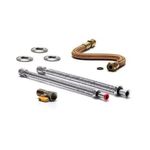 O Kit Ligação Instalação para Aquecedores a Gás Distak com Registro Reto, Mangueiras de 40cm e com Bitolas de Entrada e Saída de Água e Gás de 3/4" 007124 é composto por: 2 flexíveis de cobre cromados com 40cm, 1 flexível para gás tomback com 40cm, 1 registro reto mf 3/4".