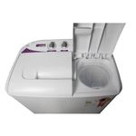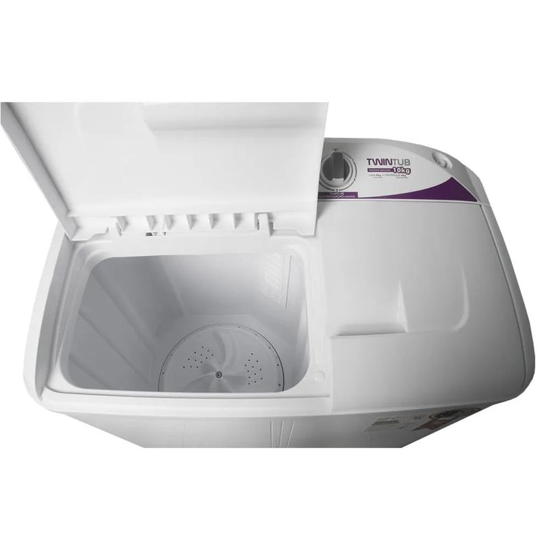 Sistema Inverter de lavagem: o sistema gira para os dois lados, permitindo uma melhor lavagem de roupas. Uma lavadora moderna e versátil para se adaptar ao seu estilo, seja ele qual for. A única com dois compartimentos que lava e centrifuga ao mesmo tempo ou separadamente. A Twin tub é tudo o que você precisa para ganhar tempo sem perder espaço.