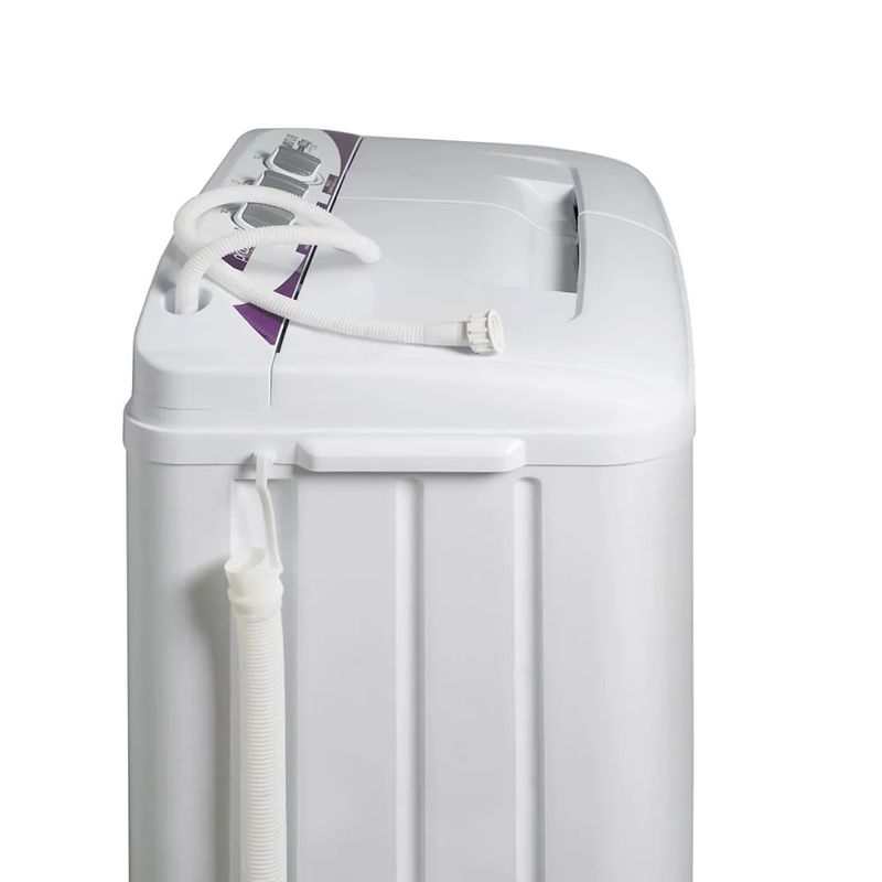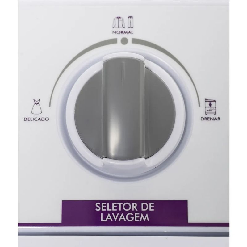A única Lavadora com 2 compartimentos, que lava e centrifuga ao mesmo tempo ou separadamente. Lava 4Kg de roupa seca e centrífuga 6Kg de roupa molhada. Perfeita para pequenos espaços. Função "drenar" no painel: permite o escoamento da água. Filtro para fiapos e pelos. Alças que facilitam o transporte. Selo de qualidade A da PROCEL. 26% mais eficiente que a média do mercado, segundo Inmetro. Alta performance - nota A em eficiência energética no Inmetro.