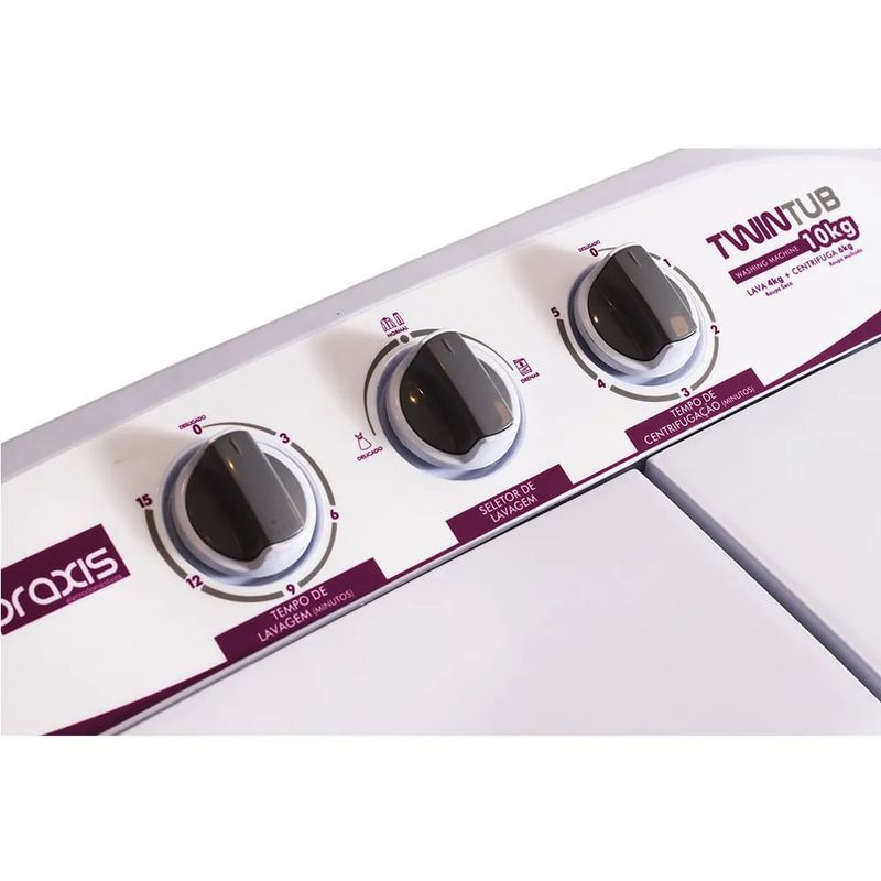Lavadora e Centrifuga Praxis 10kg 2 em 1 Branca Twin Tub - 220 Volts