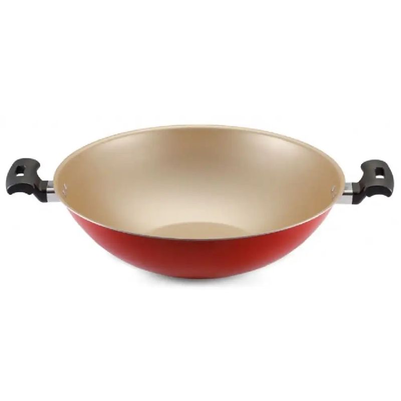Panela Wok Panelux 5 Litros 32cm Antiaderente com Tampa de Vidro Premium Vermelha