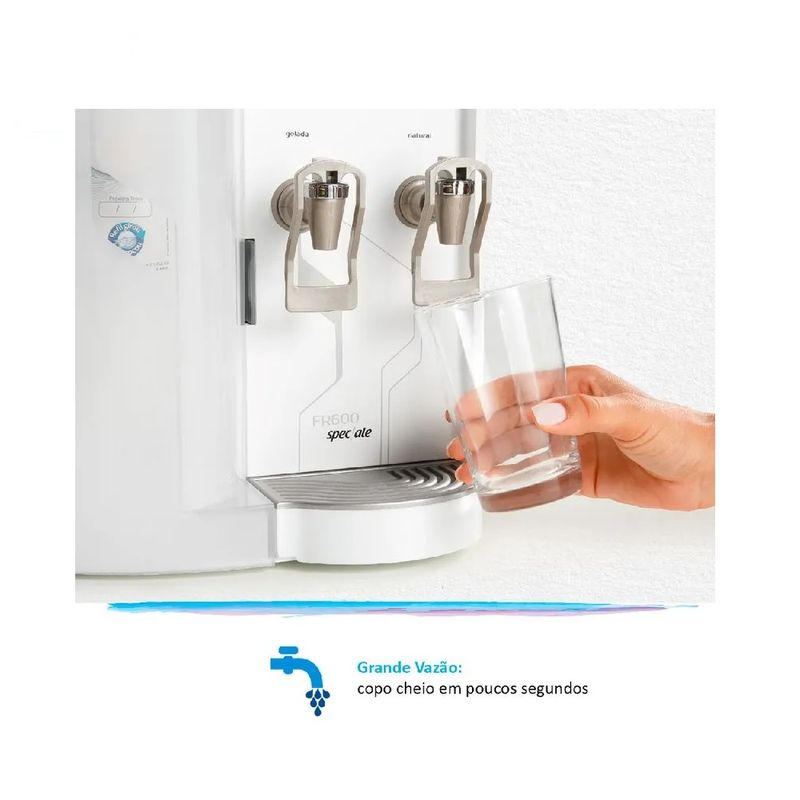 Só o FR600 Speciale tem a capacidade de uso que você precisa. Ele atende grande quantidade de pessoas e apresenta baixo custo de energia. Possui Refil ‘‘Girou, Trocou’’, nanotecnologia contra micro-organismos e está disponível nas cores branca e prata.