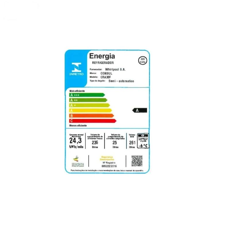 Refrigerador Consul Degelo Seco 261 Litros CRA30FBBNA – 220 Volts