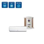 ar condicionado inverter 9000 BTUs direto do smartphone ou por comando de voz, ajustando temperatura, ventilação e funções especiais com facilidade. Ele ainda oferece operações de refrigeração, desumidificação e ventilação, além da função Swing, que distribui o ar de forma uniforme em todo o ambiente.