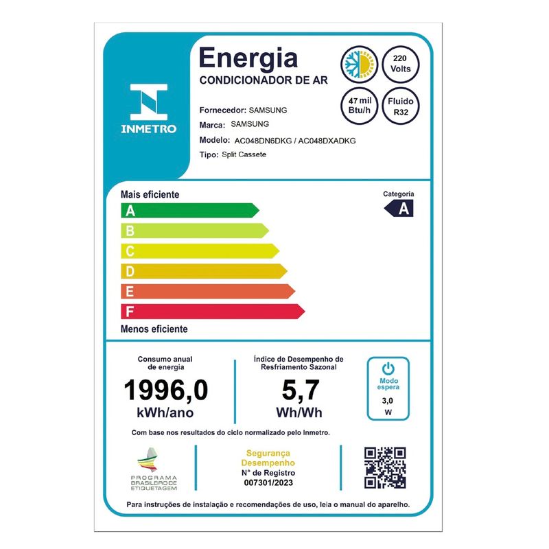 Código de Fábrica Split: AC048DXADKG/AZ+AC048DN6DKG/AZ+PC6EUSMANW+AR-KH03E
