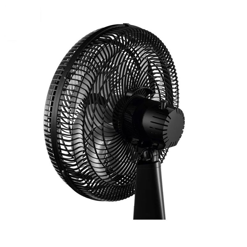 possui um sistema oscilante horizontal que amplia o raio de alcance do vento. Você pode optar por distribuir o ar por todo o ambiente ou fixar o botão para direcionar o fluxo conforme sua preferência. A inclinação vertical regulável permite um direcionamento ideal do fluxo de ar, enquanto as 3 opções de velocidade—máxima, média e mínima—ajustam o vento às suas necessidades específicas.