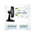 ALÇA DE TRANSPORTE + PORTA-FIO Além do design compacto, a alça traseira permite que o ventilador seja transportado entre os cômodos da casa com facilidade. Com o porta-fio embutido, você armazena o fio elétrico dentro do aparelho após o uso.